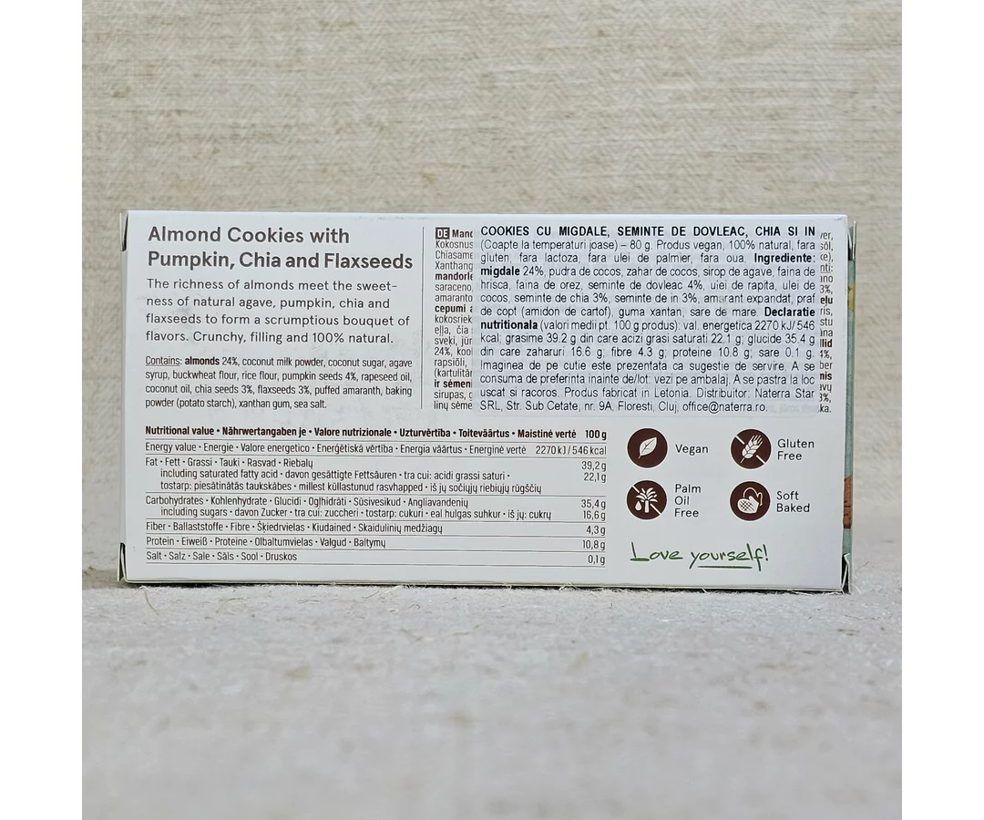 Biscuiți cu migdale, semințe de dovleac și chia fără gluten 80g