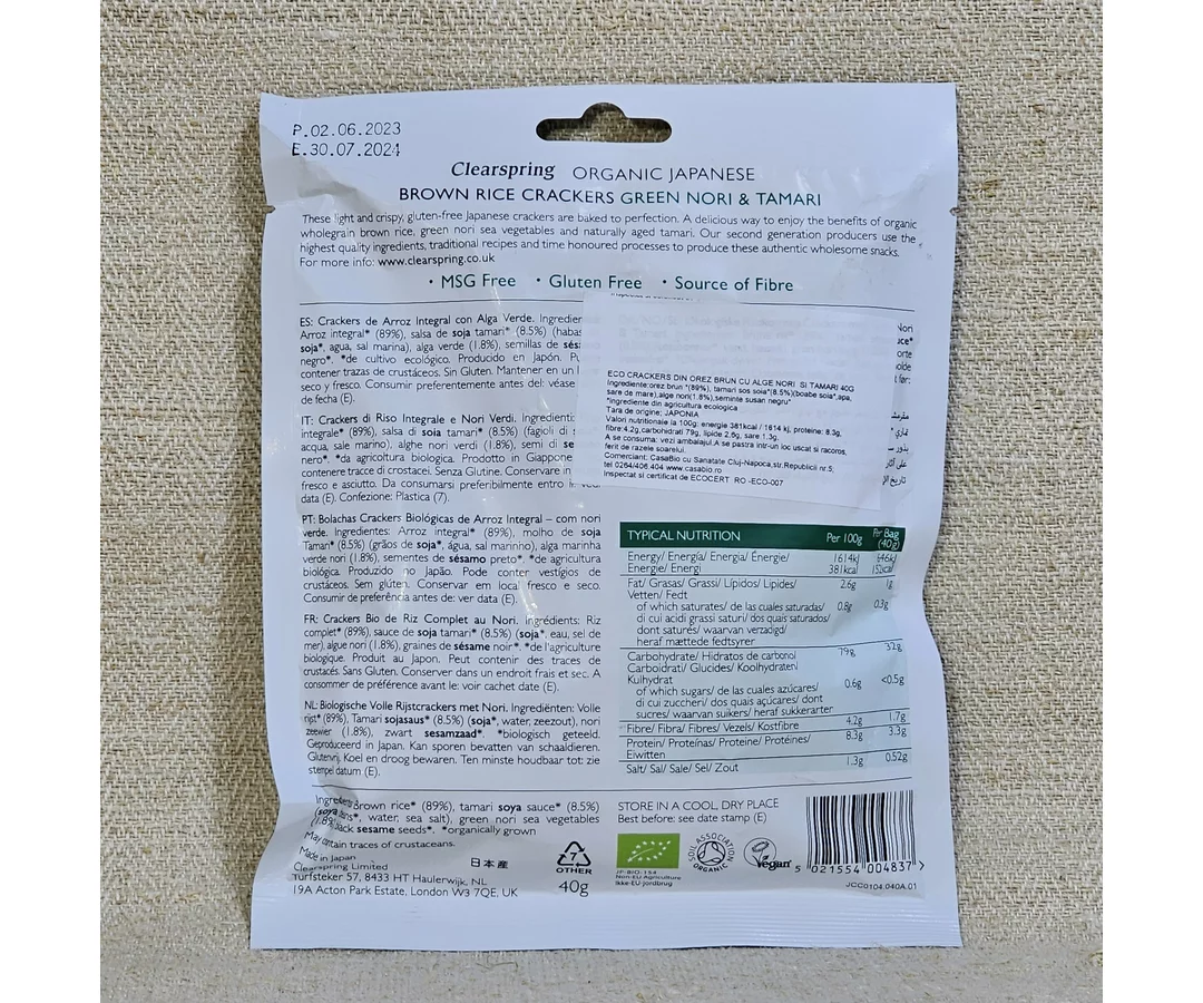 Crackers din orez integral cu alge nori verzi și tamari ECO 40g