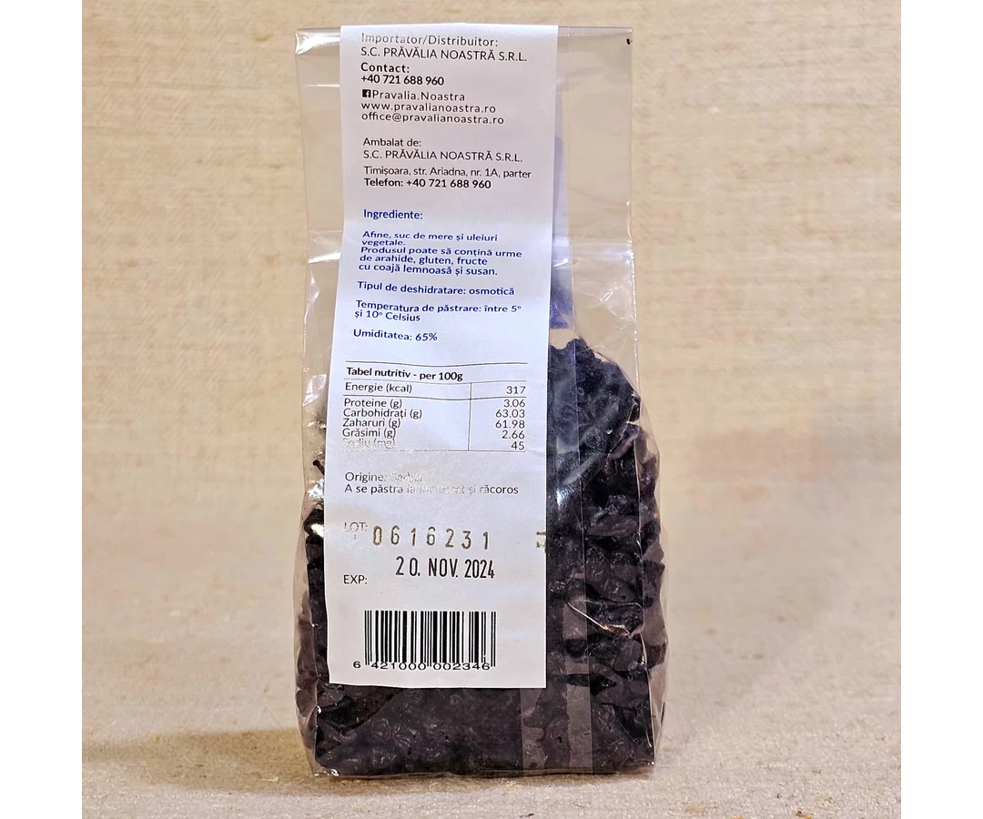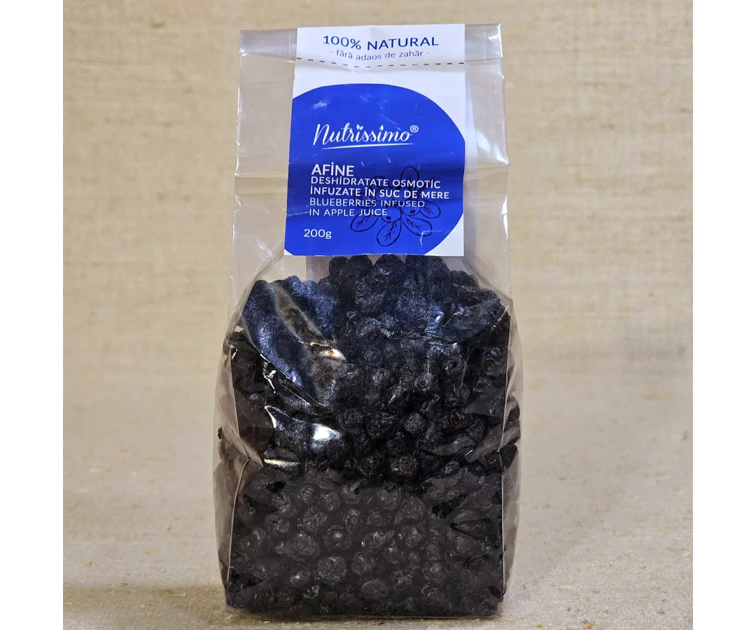 Afine deshidratate osmotic infuzate în suc de mere natural 200g