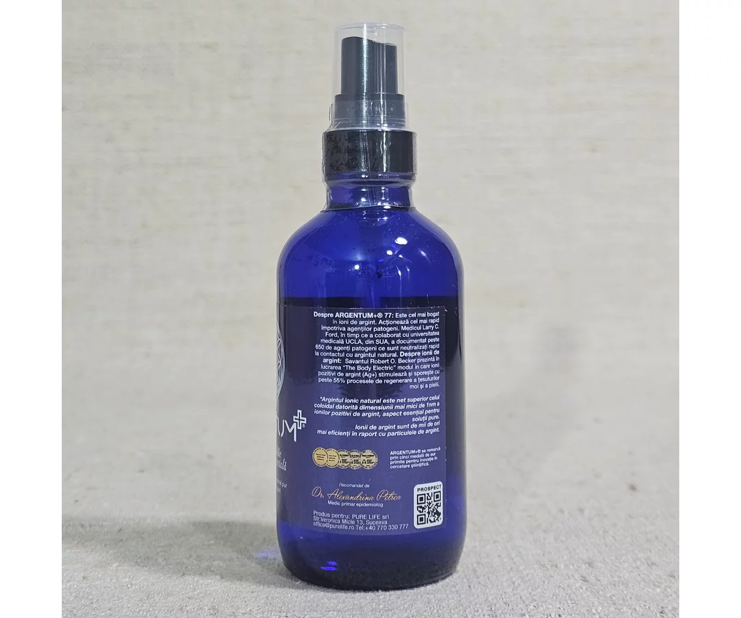 Spray hidrosoluție cu argint ionic Argentum 77 PPM 120ml