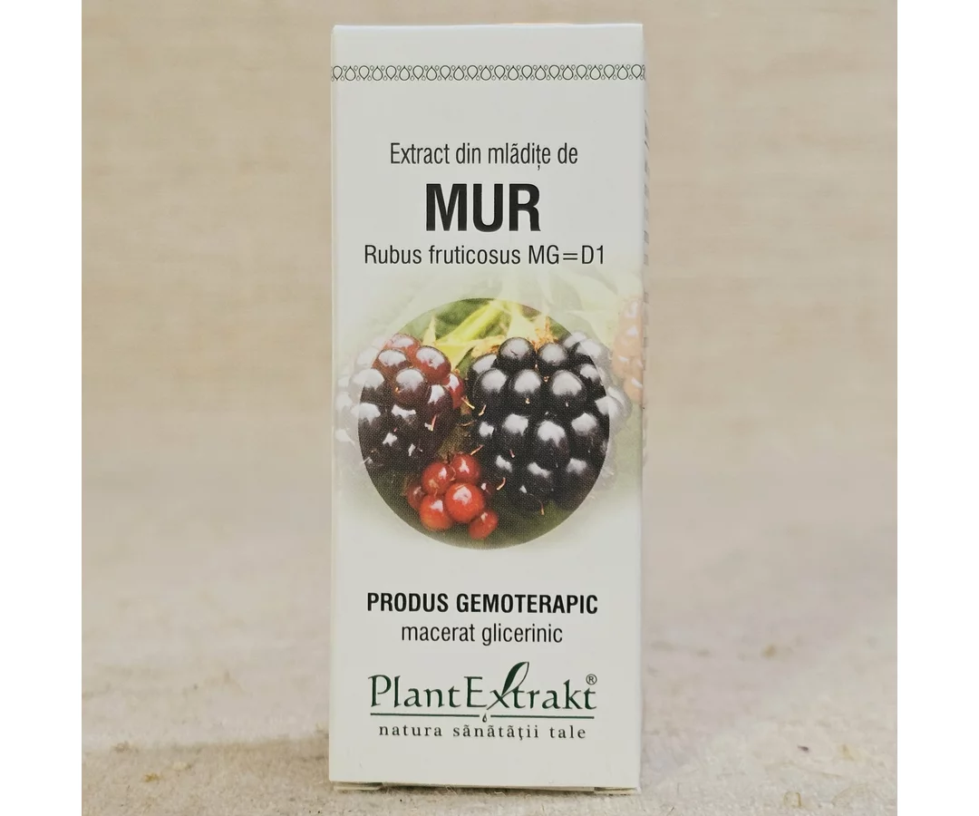 Extractul din mladite de mur are ca nivele de actiune: aparat respirator, aparat osteoarticular, uter, mucoase, rinichi, sistem circulator. Extractul gemoterapic este obtinut din mladite proaspete de *Mur (Rubus fructicosus), prelucrate conform retetei farmaceutice de macerat glicerinic.