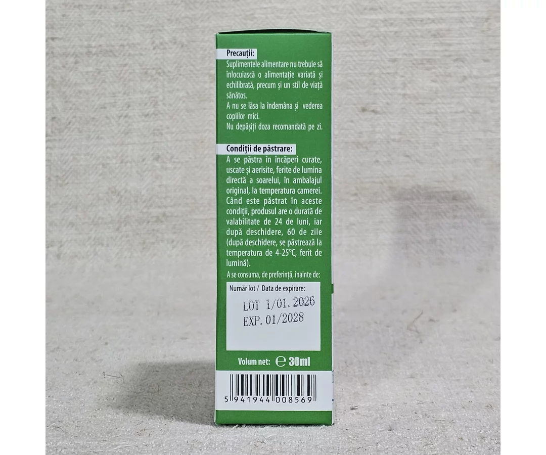 Produsul este un supliment alimentar si nu trebuie sa inlocuiasca o alimentatie variata si echilibrata, precum si un stil de viata sanatos.