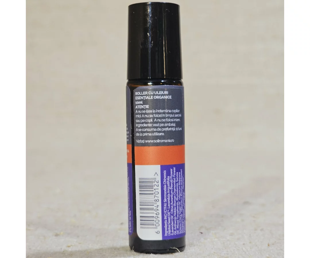 Acest produs este special conceput pentru aromoterapie practică. SOiL Roll-On Relax conține un amestec sinergic de uleiuri esențiale organice amestecate într-o bază de ulei de soia și ulei de susan presate la rece. Acestea au fost diluate la concentrația potrivită pentru a fi eficiente atunci când sunt aplicate pe punctele de puls sau în zonele afectate. Ambalajul de dimensiuni reduse asigură o aplicare ușoară și portabilitate atunci când călătoriți.