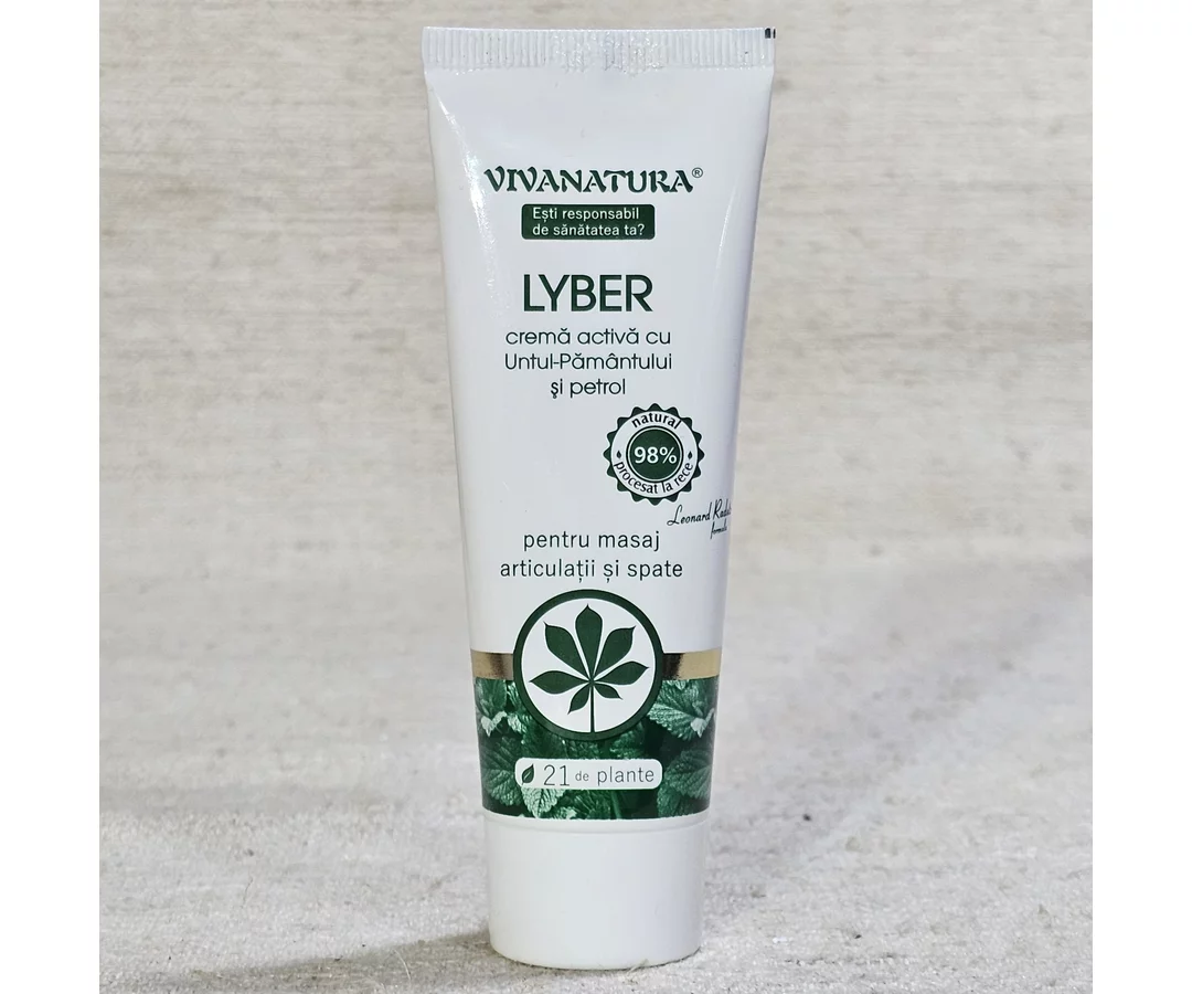 Lyber cremă activă cu Untul-pământului și petrol pentru masarea articulațiilor și a spatelui 75ml