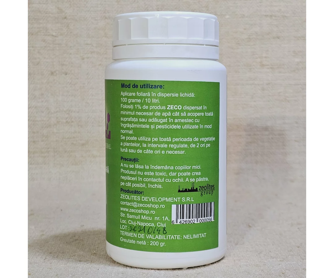 Mod de utilizare: Aplicare foliara in dispersie lichida: 100grame / 10 litri Folositi 1% de produs ZECO dispersat in minimul necesar de apa cat sa acopere toata suprafata sau adaugat in amestec cu ingrasamintele si pesticidele utilizate in mod normal.