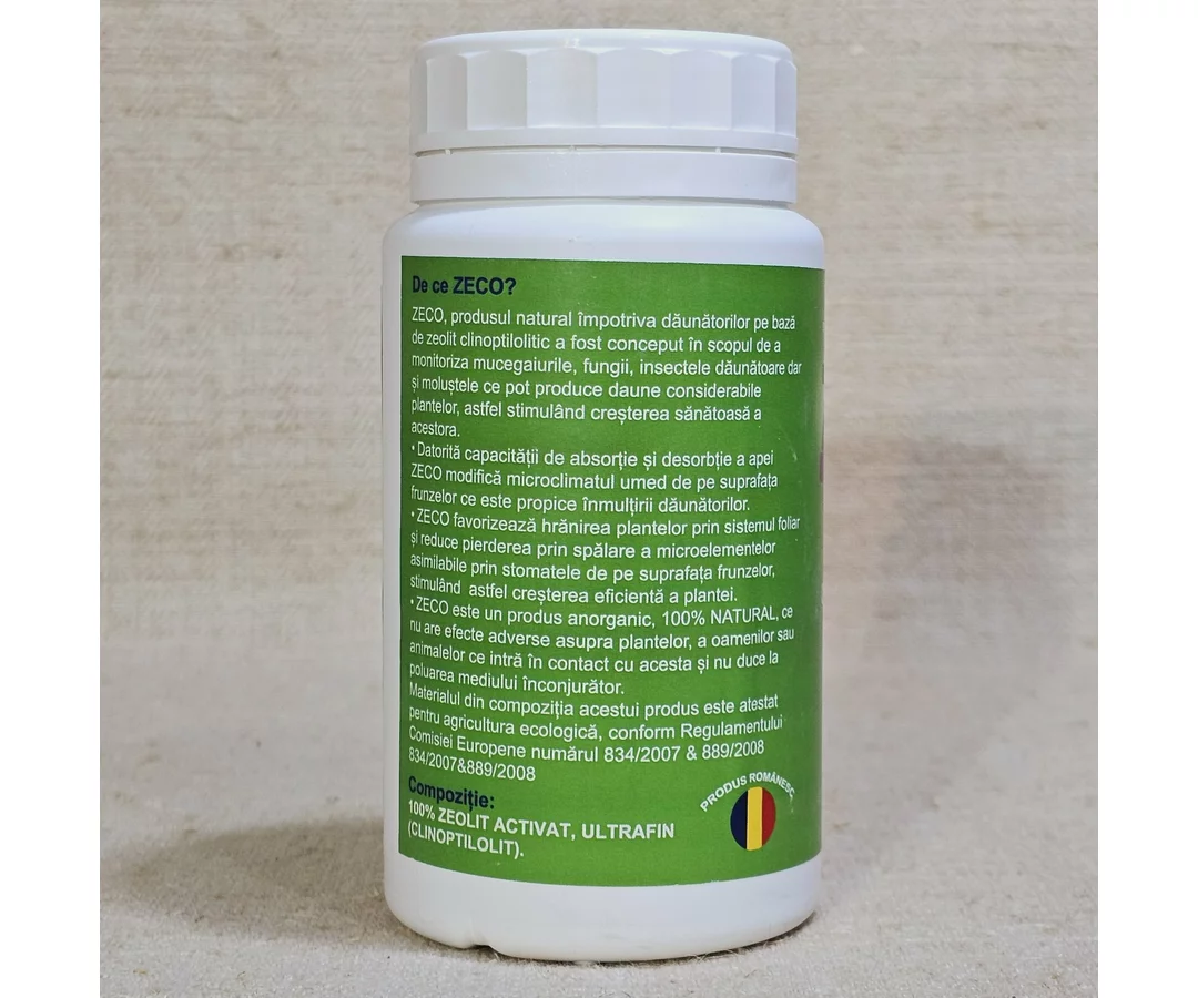 Modul in care ZECO actioneaza asupra insectelor dar si asupra plantelor il diferentiaza clar de insecticidele chimice si il crediteaza ca fiind un produs extrem de eficient si, in acelasi timp, prietenos cu mediul inconjurator: Datorita capacitatii de absortie si desorbtie a apei zeolitul ZECO reuseste sa distruga microclimatul umed de pe suprafata plantelor ce este propice inmultirii insectelor. Astfel pe timpul noptii inmagazineaza apa pe care o elibereaza ziua, in prezenta caldurii, mentinand astfel un nivel de umiditate constant inadecvat inmultirii insectelor. Avand in vedere ca produsul se prezinta sub forma de pulbere acesta reuseste sa patrunda si sa adere pe suprafata corpului insectelor in ciuda faptului ca majoritatea detin peri de aparare, acest lucru blocheaza eliberarea dioxidului de carbon și provoacă moartea insectelor. În cazul în care insecta dăunătoare care se dorește a fi eliminata are loc si patrunde in stomatele frunzelor plantei pulberea de zeolit aderă pe suprafata stomatelor si împiedica insectele să se oxigeneze provoacand moartea acestora. Atunci cand un material strain adera pe suprafata corpului sau pe perii unei insecte acesata incearca sa il inlature. Aceasta actiune continua de periaj provoaca leziuni profunde insectei. Pe suprafata ranii apare un fluid din interiorul acesteia pe care zeolitul, datorita structurii microporoase, il va absorbi si va provoca moartea insectei prin deshidratare. Sporii ciupercilor sunt prezenti in toate fazele de crestere a plantei si se dezvolta in conditii de umiditate excesiva. De aceea prin utilizarea Insecticidului ZECO ca si tratament preventiv inca de la intrarea in perioada de vegetatie poate evita neplacerile cauzate de aparitia mucegaiurilor. In conditiile in care o cultura este deja afectata de mucegaiuri pulberea de zeolit ajuta la vindecarea plantelor datorita proprietatilor sale de reglare a umiditatii nepermitand germinarea sporilor si aparitia miceliului ce ar da nastere unei noi generatii de ciuperci. Insecticidul natural produs de Zeolites Development, prin utilizarea lui constanta pe toata perioada de vegetatie a unei plante, ii confera agricultorului posibilitatea sa aleaga momentul recoltarii in functie de ceea ce isi doreste sa obtina si nu este obligat sa recolteze datorita unor factori externi.